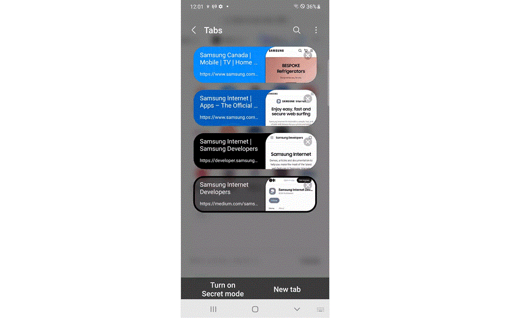 Cea mai recentă actualizare a browserului Samsung include câteva îmbunătățiri privind experiența generală de utilizare, inclusiv capacitatea de a glisa și plasa tab-uri în grupuri de tab-uri personalizate. Acest lucru face navigarea și organizarea să fie mai fluide și mai rapide.