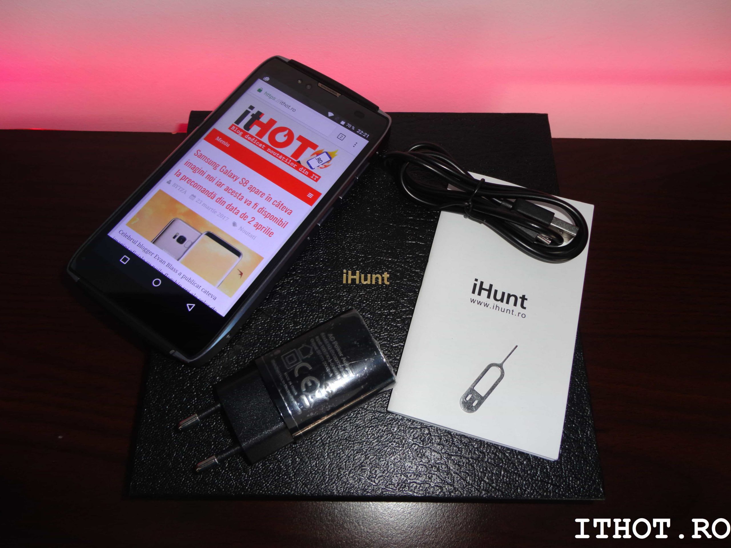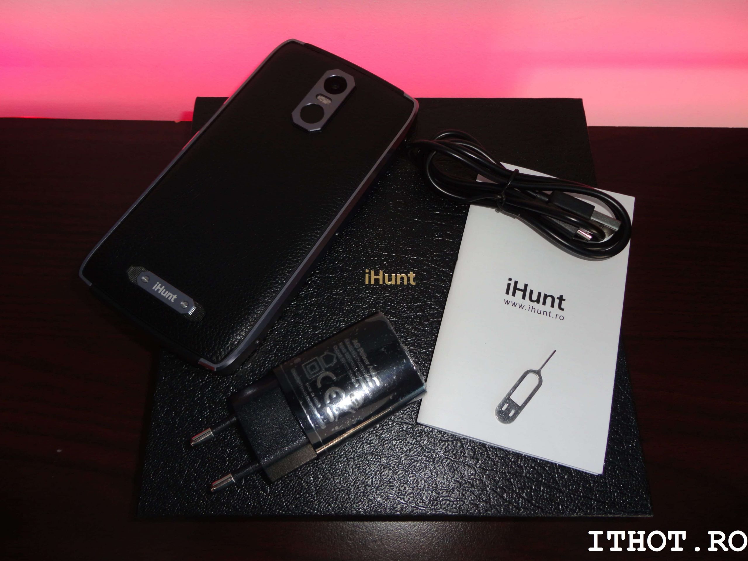 iHunt X300 Elite este livrat intr-un ambalaj elegant de culoare neagra iar in interiorul acestuia regasim aranjate intr-un mod atractiv urmatoarele accesorii: incarcatorul, manulal de utilizare si cablu de date microUSB.