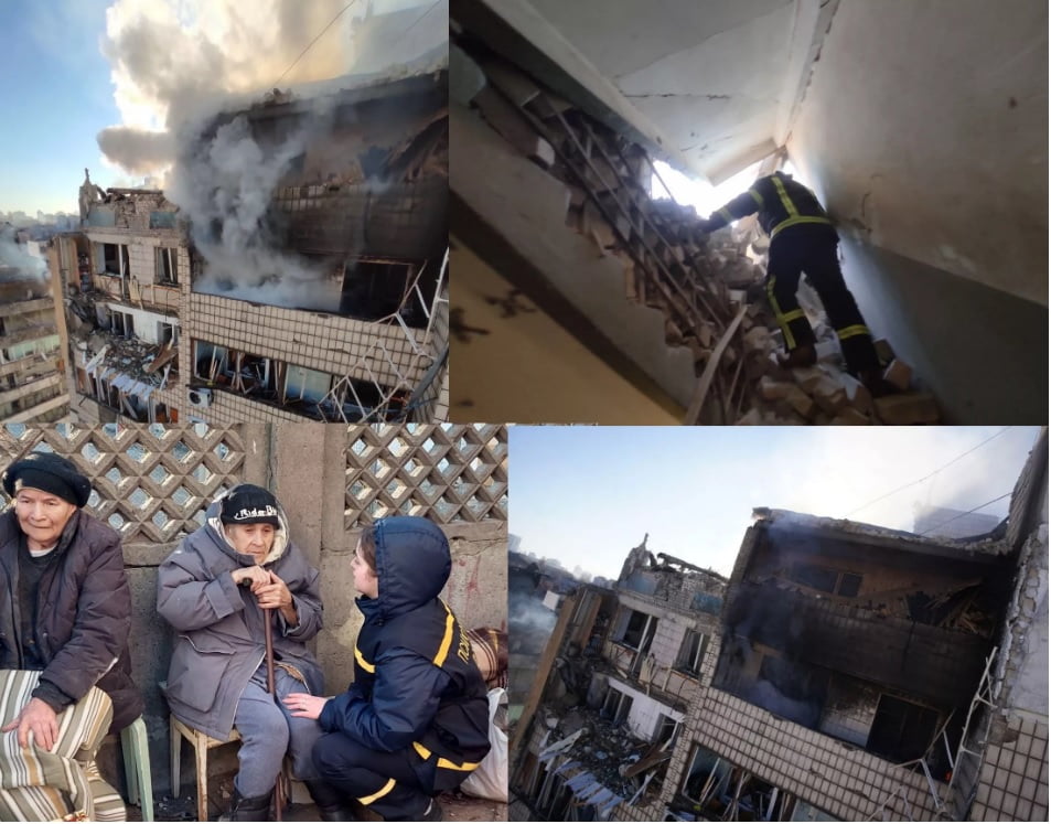 În Kiev o clădire de 12 etaje s-a prabușit parțial în această dimineață, fiind lovită de mai multe proiectile rusești.