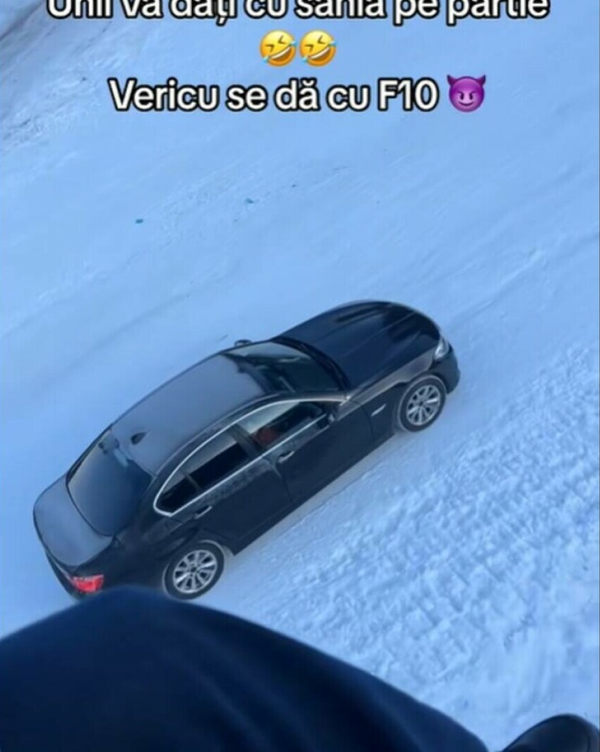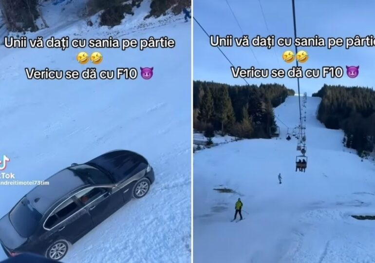 „Unii vă daţi cu sania pe pârtie, vericu’ se dă cu F10”, scrie utilizatorul care a postat imaginile pe TikTok, în cursul zilei de vineri.