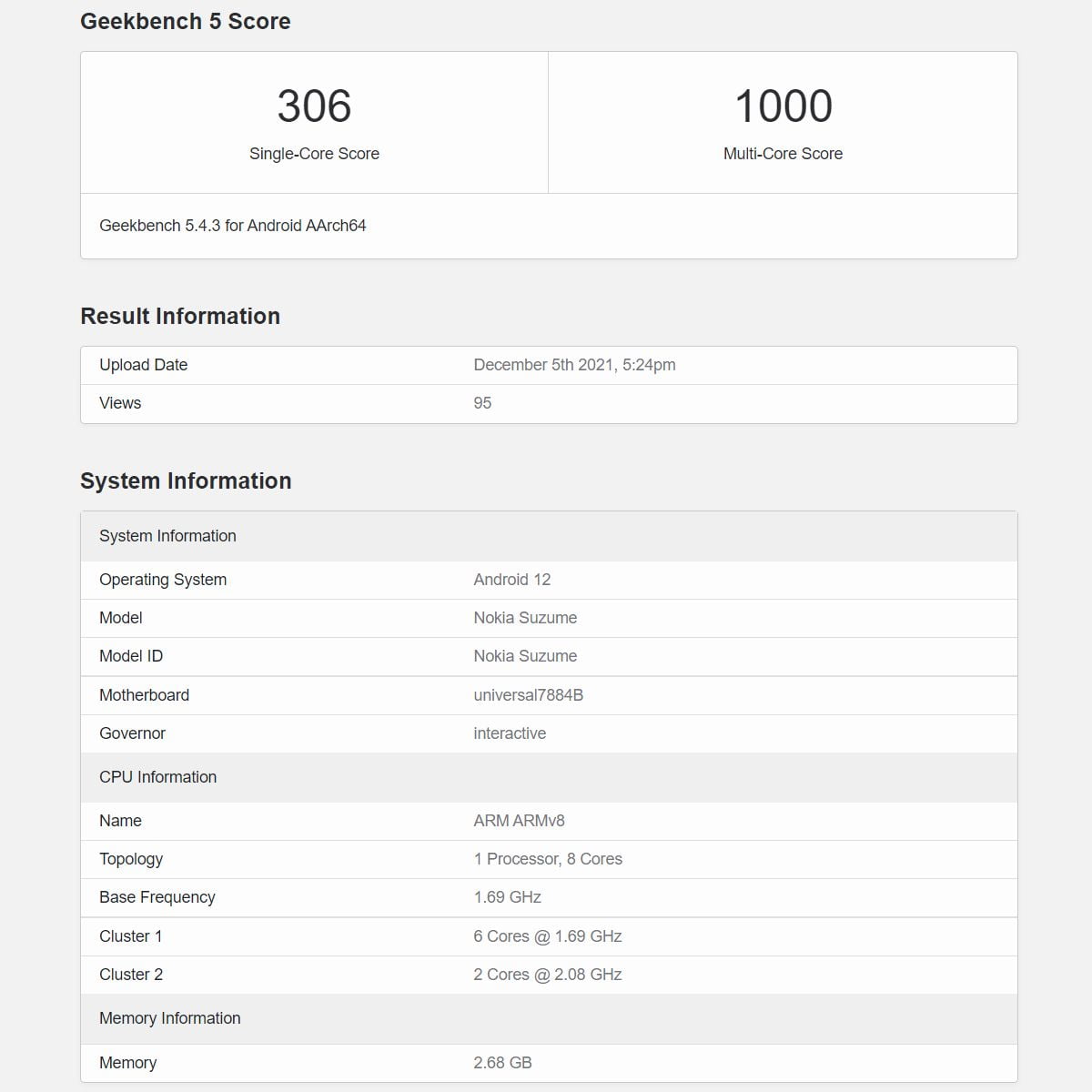 Cei de la Geekbench au dezvaluit specificatiile hardware ale unui nou smartphone Nokia iar terminalul se intituleaza Suzume, si dispune de un hardware destul de puternic.