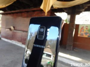 Pe spatele carcasei este pozitionat senzorul camerei foto principale si am apreciat faptul ca nu mai iese atat de mult in evidenta fata de restul carcasei, asa cum se intampla in cazul modelului anterior, in speta Galaxy S8.